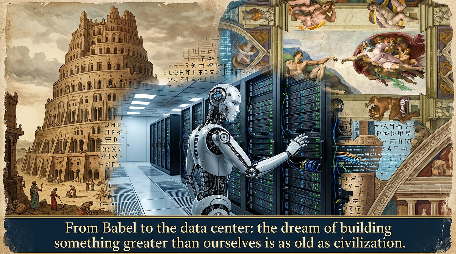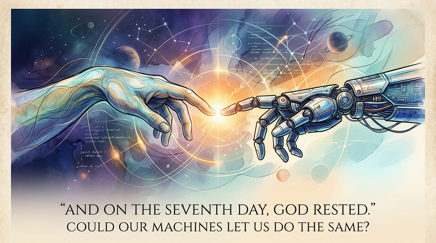 On creating intelligence in our image, the ancient dream of sacred rest, and why the answer is more complicated — and more urgent — than you think.