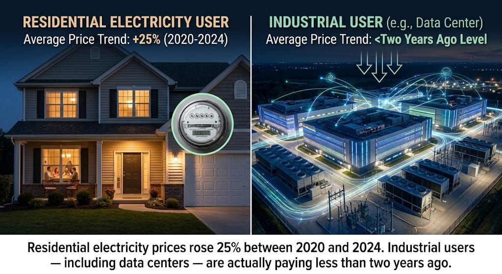 Nowhere is this dynamic more visible than in Northern Virginia — so-called Data Center Alley — which hosts over 600 data centers and handles roughly 70% of the world’s internet traffic. Virginia’s Joint Legislative Audit and Review Commission projected that data center growth could push residential bills up by $444 per year by 2040. Yale Climate Connections reported the uncomfortable contrast: between 2020 and 2024, residential electricity prices in the U.S. surged 25%, while industrial users — including data centers — actually pay lower average prices than two years ago.