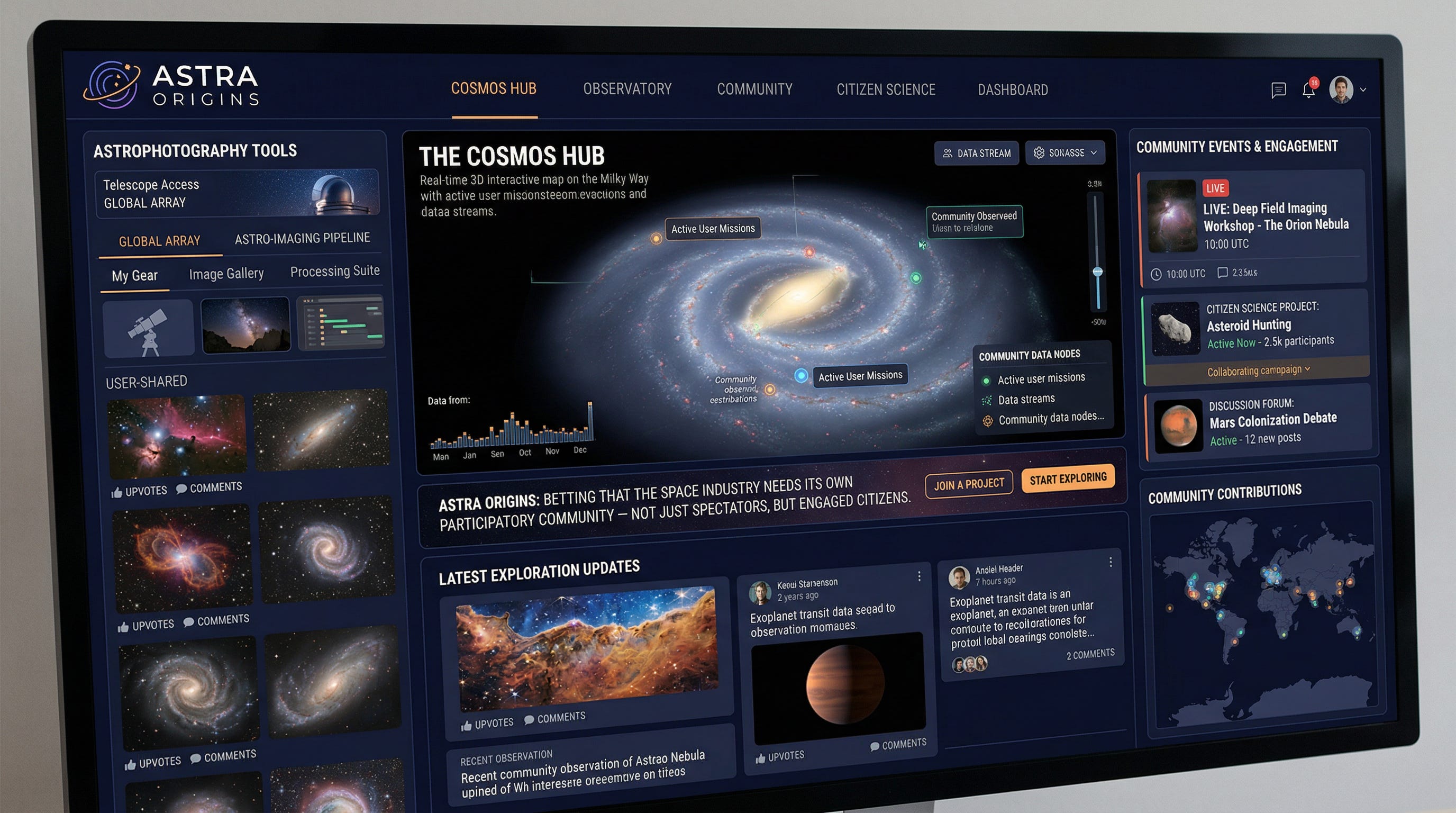 Founded by Bryan Khairallah and launched in 2023, Astra Origins is a user-interactive platform dedicated to space exploration community, education, and engagement. It is not a news site. It is not a corporate product. It is something rarer: an attempt to build participatory infrastructure around the space industry at the grassroots level — a social hub where space enthusiasts can share astrophotography, organize stargazing events, track industry achievements, discuss the legal frameworks governing space, and stay informed about the commercial forces reshaping the cosmos.