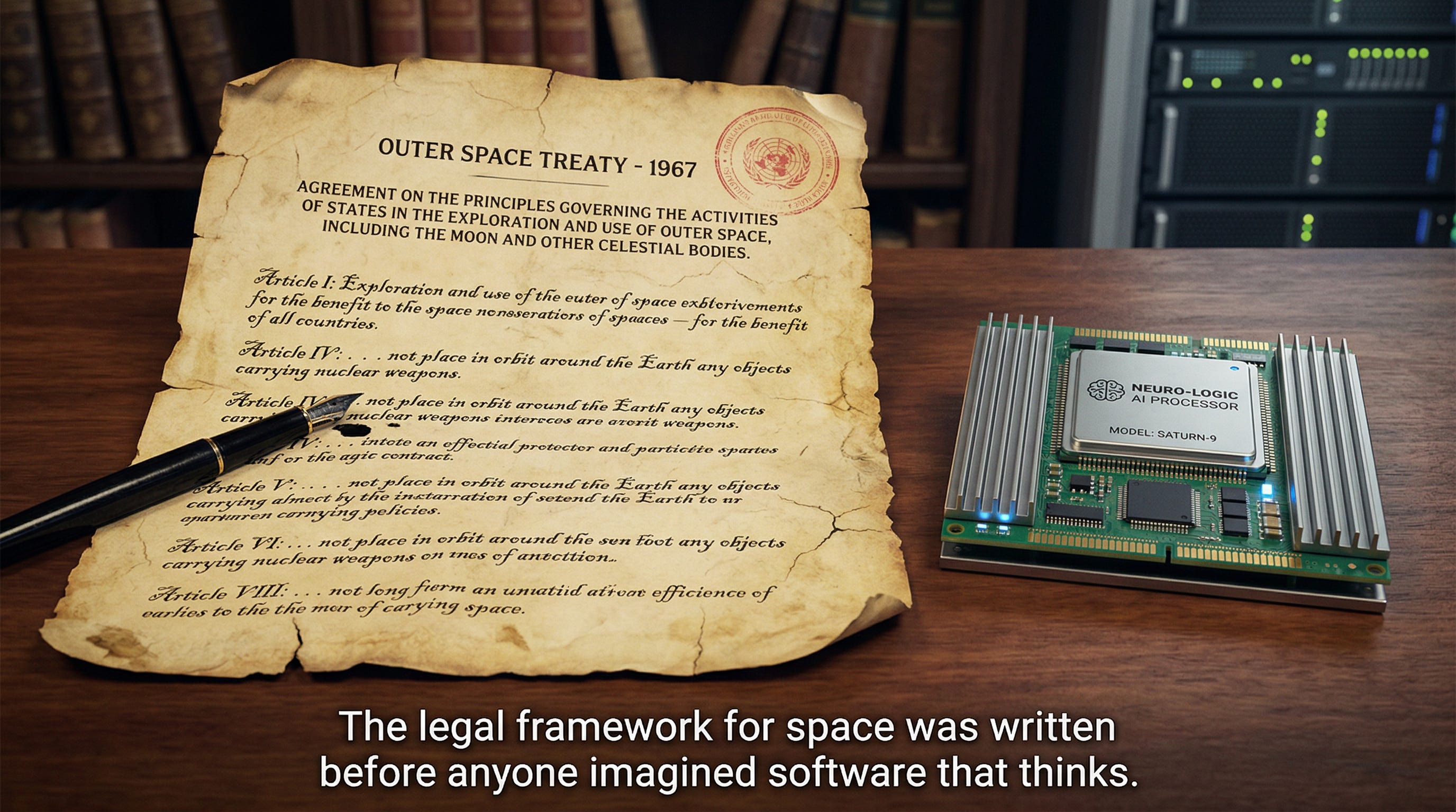 And here is the part that should unsettle you more: there is no law — none, anywhere on this planet — that specifically governs how artificial intelligence behaves in outer space.