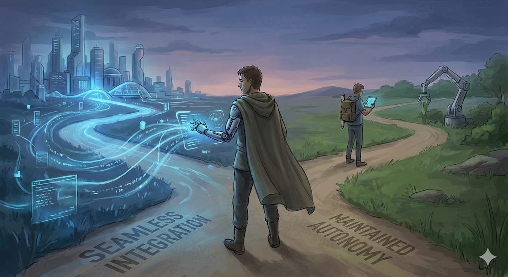 What I’m arguing is that we need to make conscious choices about this technology rather than sleepwalking into adoption driven purely by competitive pressure. We need to decide—collectively, deliberately, with full awareness of the tradeoffs—what we want to preserve about human cognition and human autonomy.