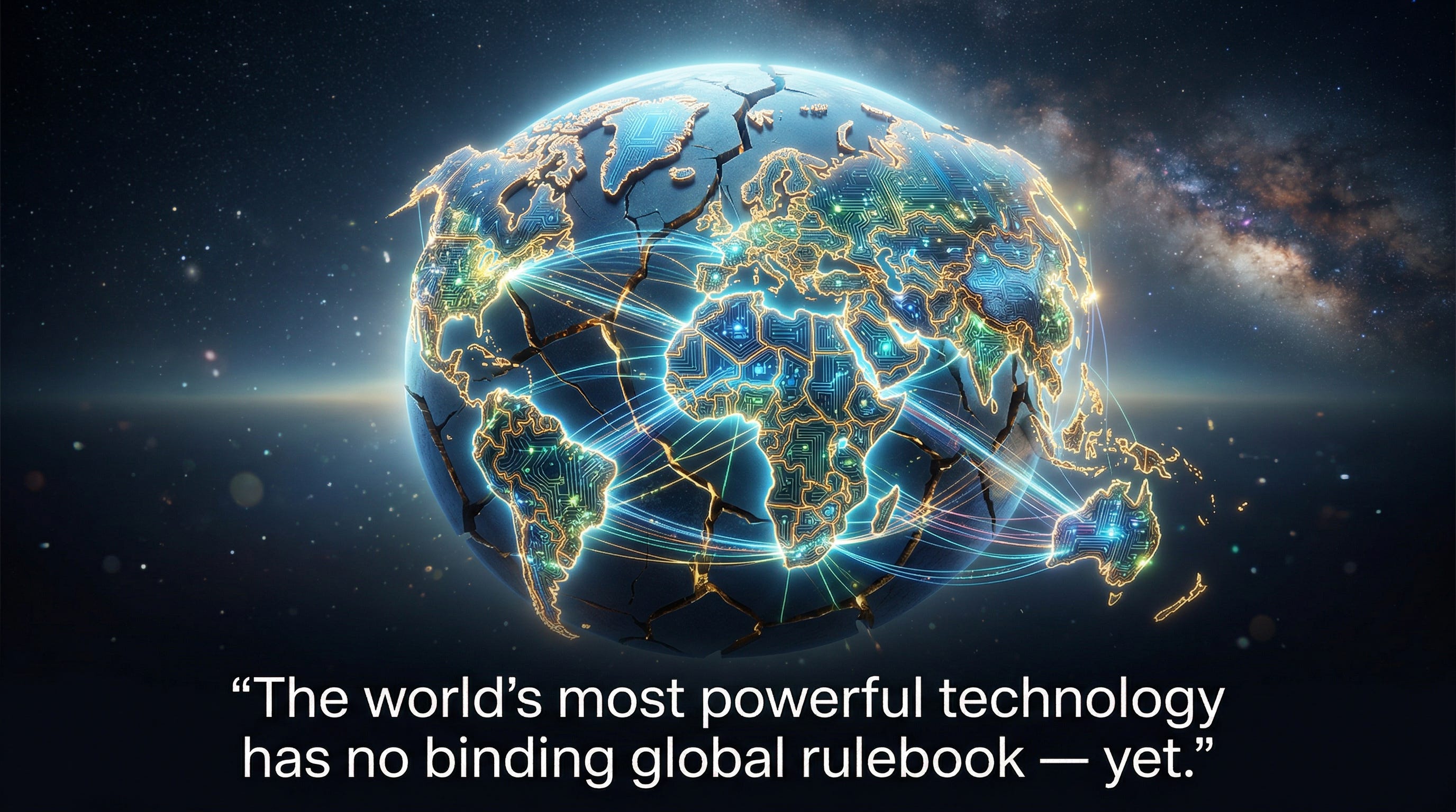 Meanwhile, the EU AI Act — the world’s first comprehensive AI regulation — applies only within Europe. The United States, under its current administration, has explicitly rejected international AI governance, refused to sign the Paris AI Action Summit declaration, and dismantled its own domestic safety infrastructure. China is building its own parallel regulatory system. India and the Global South are racing to develop AI without waiting for permission from anyone.