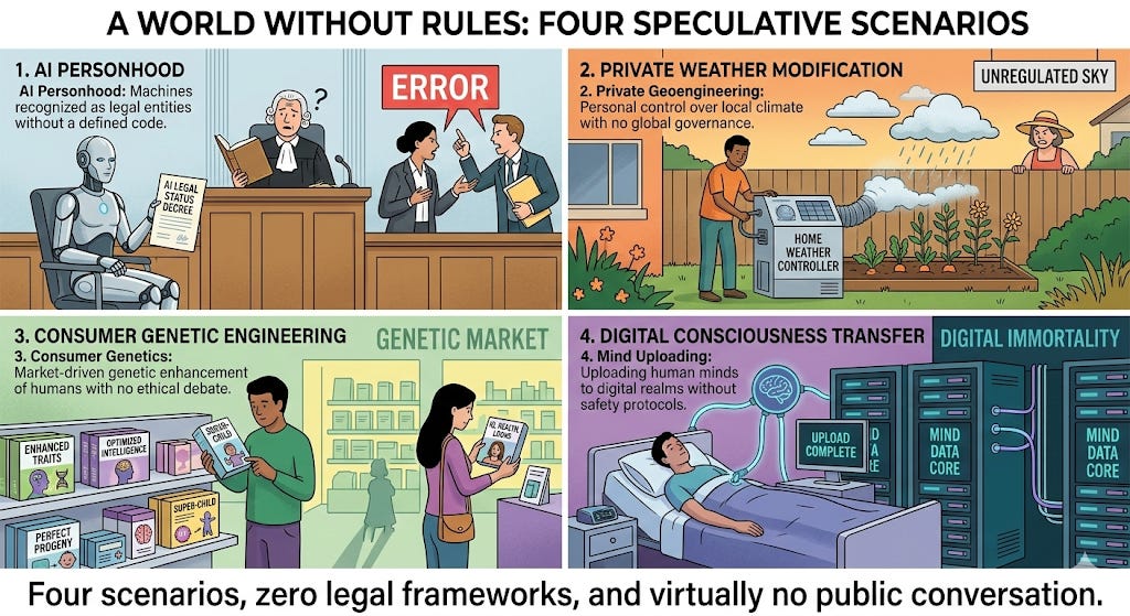 What we cannot do — and what no institution is seriously preparing for — is answer the question of what happens when these technologies converge inside a single organism.