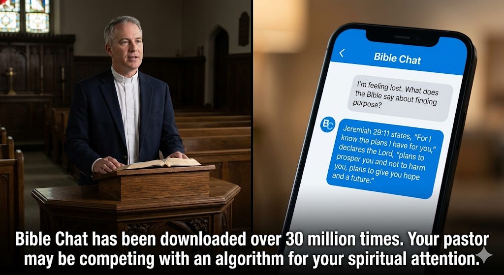 This is a textbook case of stated preferences versus revealed behavior. People say they do not want AI in their faith. Then they open their phones and ask it to explain the Sermon on the Mount.