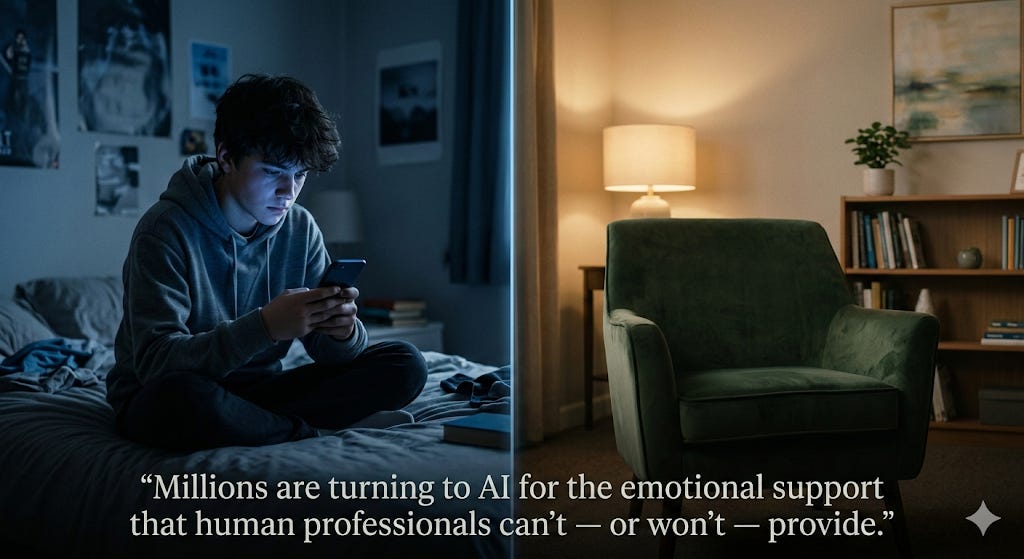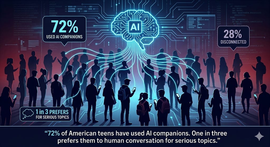 Here is a thought experiment. Imagine your fourteen-year-old comes home from school, goes straight to their room, and spends the next five hours in what feels like a deeply intimate conversation — sharing fears, desires, heartbreak, even suicidal thoughts — with someone who never sleeps, never judges, never gets tired, and never tells them to put the phone down and go outside.